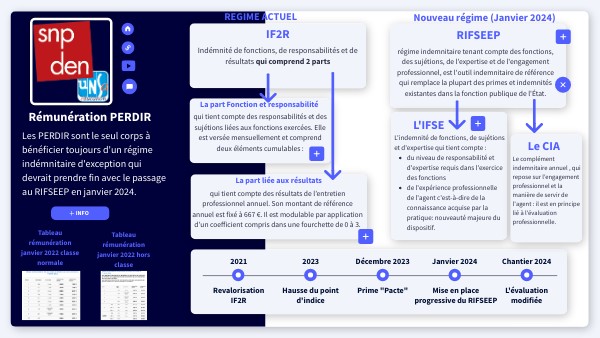Les PERDIR sont le seul corps à bénéficier toujours d'un régime indémnitaire d'exception qui devrait prendre fin avec le passage au RIFSEEP en janvier 2024.
