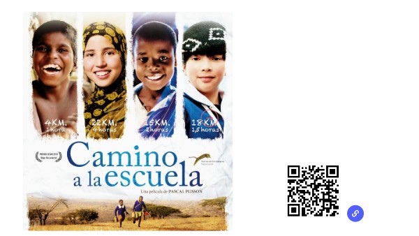 un cartel: une affiche un documental una fotografía El título la escuela Caminar: marcher un chico/ una chica Kilómetros