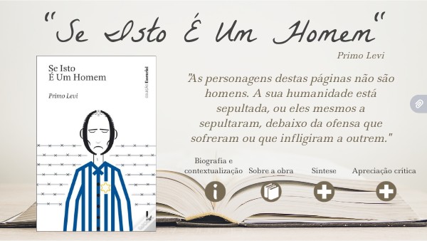 Foi na literatura que Primo Levi encontrou uma forma de falar sobre o horror nazi. Da sua experiência surgiu o livro Se isto é um homem, onde ele retrata o que viu e como era o tratamento desumano dado aos prisioneiros nos campos de concentração. Este título traduz uma tentativa de reflexão e até um sentimento de inconformismo e indignação, traduzindo, assim, a desumanidade a que o autor foi sujeito.