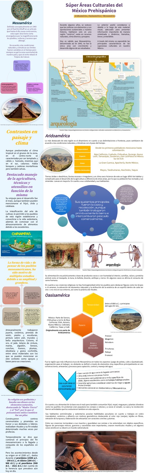 Lo anterior podrá constatarse a detalle a lo largo de este material visual, adecuado para presentar información importante de manera sintetizada y dinámica, llamativa, breve y entendible. A través del mismo se expondrán las principales características de las superareas culturales en nuestro México.