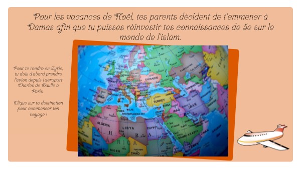 Pour les vacances de Noël, tes parents décident de t'emmener à Damas afin que tu puisses réinvestir tes connaissances de 5e sur le monde de l'islam.