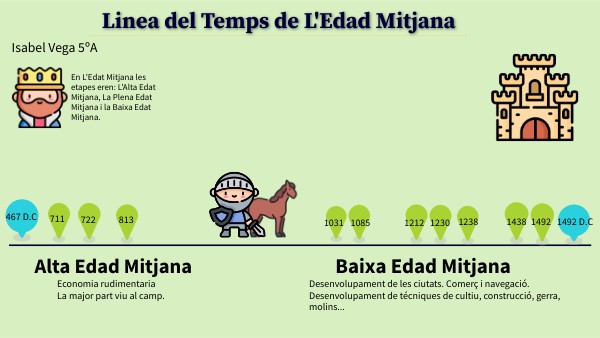 En L'Edat Mitjana les etapes eren: L'Alta Edat Mitjana, La Plena Edat Mitjana i la Baixa Edat Mitjana.