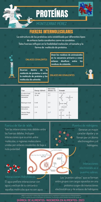 La estructura de las proteínas esta estabilizada por diferentes tipos de enlaces tanto covalentes como no covaletes. Tales fuerzas influyen en la fexibilidad molecular, el tamaño y la forma de molécula de proteína.