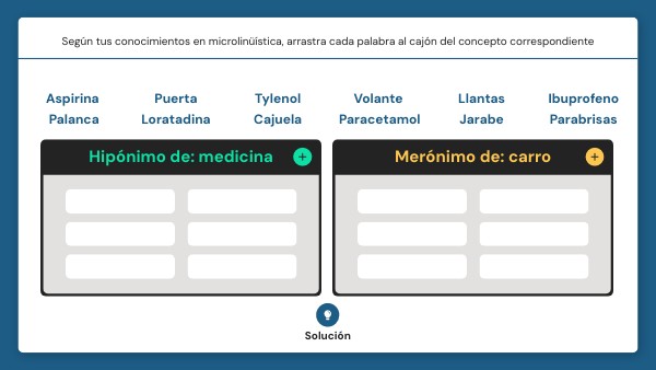 Según tus conocimientos en microlinüística, arrastra cada palabra al cajón del concepto correspondiente