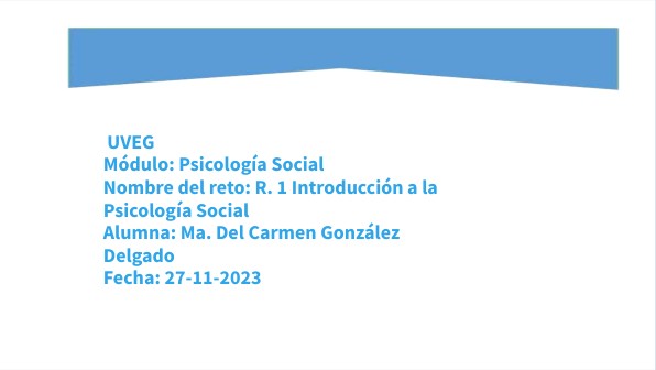 UVEG Módulo: Psicología Social Nombre del reto: R. 1 Introducción a la Psicología Social Alumna: Ma. Del Carmen González Delgado Fecha: 27-11-2023