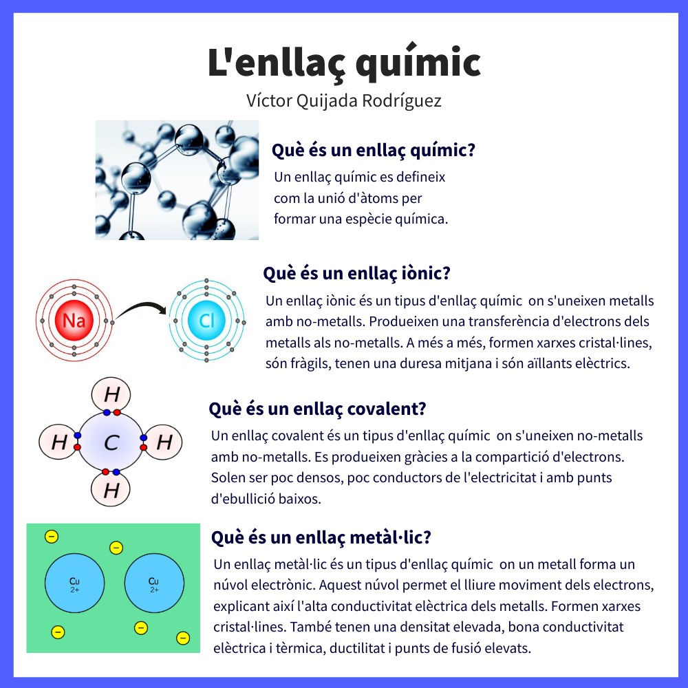 Un enllaç químic es defineix com la unió d'àtoms per formar una espècie química.