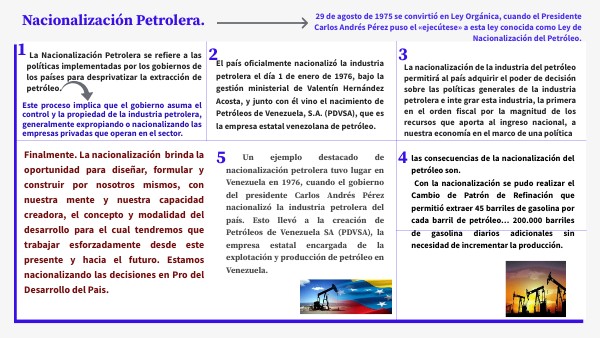 La Nacionalización Petrolera se refiere a las políticas implementadas por los gobiernos de los países para desprivatizar la extracción de petróleo.
