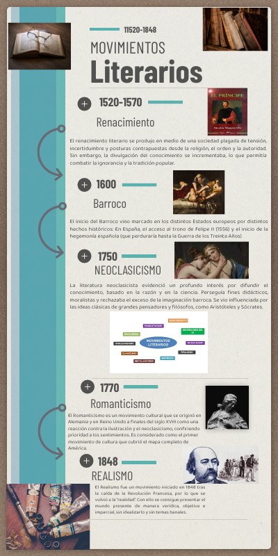 1.Surgió en los siglos XV y XVI, pero tuvo sus primeras manifestaciones en la Italia del siglo XIII y XIV, con las figuras de Dante Alighieri (1265-1321), Francesco Petrarca (1304-1374) y Giovanni Bocaccio (1313-1375). 2.Los principales países en que se desarrolló una obra literaria renacentista fueron Italia, Alemania, Holanda, España, Portugal, Francia e Inglaterra. 3.Surgieron nuevos géneros, nuevas formas de la métrica y nuevos temas, influenciados por la filosofía del humanismo. 4.Presenció la reaparición de los motivos clásicos grecorromanos, así como de la concepción del arte imitativo que Aristóteles desarrolla en su Poética.