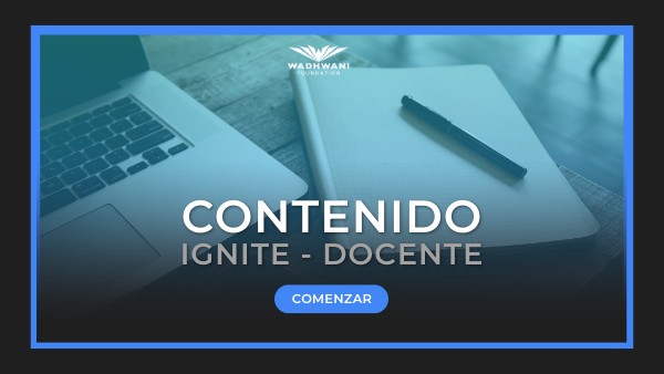 La fundación Wadhwani, ha dedicado tiempo para generar y producir contenido que te acompañe y facilite la labor de inspirar y guiar a los alumnos durante el programa IGNITE. En este material puedes encontrar lo siguiente:
