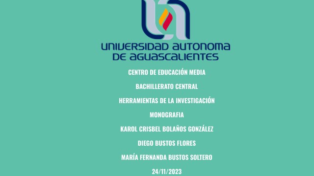 Centro de Educación MediaBachillerato Central Herramientas de la Investigación Monografia Karol Crisbel Bolaños González Diego Bustos Flores María Fernanda Bustos Soltero 24/11/2023