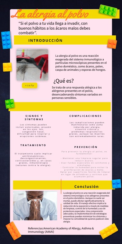 La alergia al polvo es una reacción exagerada del sistema inmunológico a los alérgenos presentes en el polvo doméstico. Aunque no suele ser mortal, puede afectar significativamente la calidad de vida. El manejo efectivo implica la reducción de la exposición a través de medidas de limpieza, control de la humedad y uso de protectores especiales. Una comprensión adecuada y la implementación de estrategias preventivas pueden minimizar los síntomas y mejorar la comodidad de quienes padecen esta alergia.