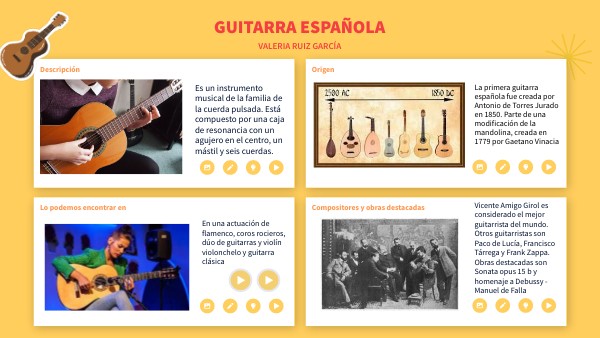 La primera guitarra española fue creada por Antonio de Torres Jurado en 1850. Parte de una modificación de la mandolina, creada en 1779 por Gaetano Vinacia