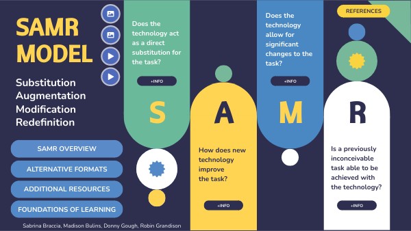 Ritter, Katie (2021). SAMR. Talk Tech With Me. https://talktechwithme.com/resources/integration-stations/samr/