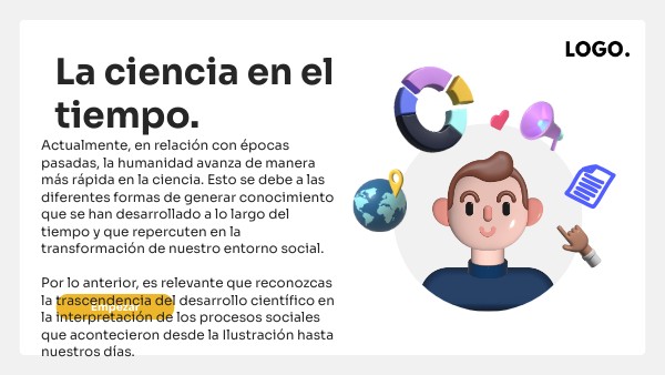 Actualmente, en relación con épocas pasadas, la humanidad avanza de manera más rápida en la ciencia. Esto se debe a las diferentes formas de generar conocimiento que se han desarrollado a lo largo del tiempo y que repercuten en la transformación de nuestro entorno social. Por lo anterior, es relevante que reconozcas la trascendencia del desarrollo científico en la interpretación de los procesos sociales que acontecieron desde la Ilustración hasta nuestros días.