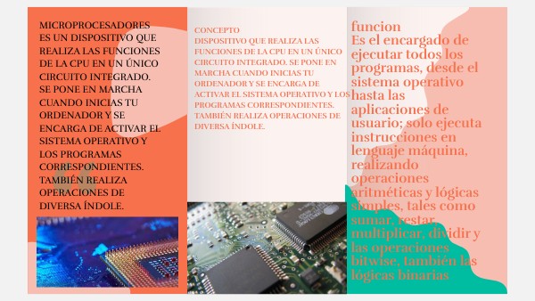 concepto dispositivo que realiza las funciones de la CPU en un único circuito integrado. Se pone en marcha cuando inicias tu ordenador y se encarga de activar el sistema operativo y los programas correspondientes. También realiza operaciones de diversa índole.