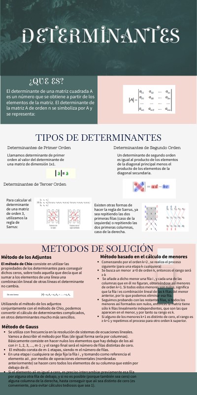 El determinante de una matriz cuadrada A es un número que se obtiene a partir de los elementos de la matriz. El determinante de la matriz A de orden n se simboliza por A y se representa: