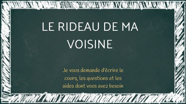 2- Le poète, qu’on devine derrière sa propre fenêtre, observe le rideau de sa voisine,vraisemblablement de l’autre côté de la rue. 3- Ce rideau symbolise l’intérêt caché de la voisine pour le poète. Le poète ressent un intérêt amoureux pour elle (Je sens mon cœur palpiter, v. 6). 4-Grace à son imagination, le poète se permet de croire que cette voisine s'interesse à lui. Il imagine qu’elle le regarde en cachette. (v7 et 8: Elle veut savoir peut-être si je suis à guetter".) 5-Le poète est déçu car il a compris que la jeune femme en aime un autre, qu’il taxe de "lourdaud" (v. 10) par dépit ; il s’est fait des idées .