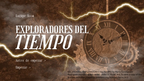 ESCAPENOOC: EXPLORADORES DEL TIEMPO by María Concepción Rodríguez Hernández is licensed under CC BY-NC 4.0. To view a copy of this license, visit http://creativecommons.org/licenses/by-nc/4.0/