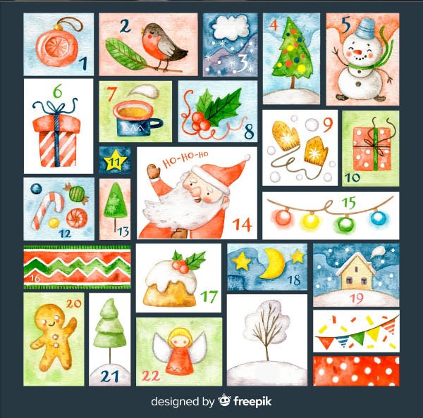 Jeder Adventskalender hat 24 Türchen und zählt die Tage vom 1. Dezember bis zum Heiligen Abend am 24. Dezember. Der Adventskalender ist eine deutsche Tradition. Mit einem Adventskalender kannst du besser auf Weihnachten warten, denn jeden Tag ist hinter dem Türchen ein kleines Geschenk, ein leckeres Stück Schokolade oder ein hübsches Bild. Klicke auf das Bild oben und mache die Aufgabe. Schreib bitte deinen Namen und Klasse. Viel Spaß!