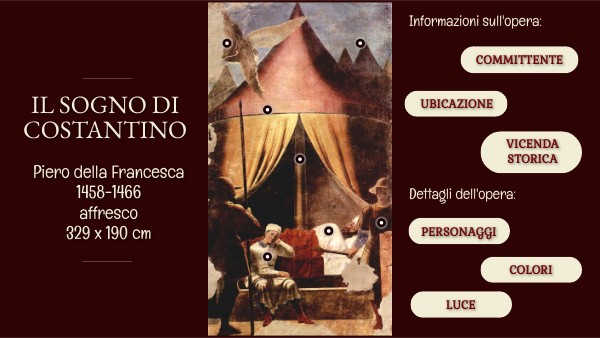 Il sogno di Costantino è un affresco di Piero della Francesca che fa parte del ciclo di affreschi denominato Storie della Croce nella Basilica di San Francesco ad Arezzo. E’ situato a destra nella porzione inferiore della parete dietro all’altare.