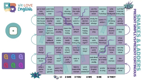 Snakes & Ladders - Present Simple vs Present Cont