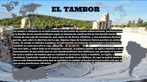 HistoriaLos griegos llamaban a este instrumento tympanon o typanon, y los romanos tympanum.Homero no mencionó el tambor ni en la llidia ni en la Odisea. En Las bacantes de Eurípides, Baco encargó a sus secuaces capturar los tambores que utilizaban los frigios. Afirma que estos tambores, fueron "inventados por mí y por Rea o la gran madre de los dioses, Cibeles". En otro pasaje dice que los Coribantes lo inventaron para él. Entre los griegos se creía que los frigios eran los inventores del tambor mientras que los romanos pensaban que habían sido los sirios. Lo más probable parece ser que los griegos copiasen algún tambor de los asiáticos y que de ahí pasaría a los romanos.Para los tambores se utilizaban pieles de toro pero más frecuentemente pieles de asno, como Cayo Julio Fredo menciona en sus fábulas, en el cuarto libro. El tambor consistía en un círculo de madera o de metal cubierto de una piel que le daba la forma de un cedazo. El tambor se tocaba algunas veces con baquetas pero lo más común era con la mano y de la misma manera como se toca el pandero, al cual se parecía mucho el tambor de los antiguos. Para producir un sonido más estrepitoso se añadían unas planchas de metal y también campanas y cascabeles. El tympanum pasó a ser el símbolo de la feminización porque lo usaban principalmente los hombres consagrados a Cibeles. Las tocadoras del tímpano fueron tenidas por mujeres de malas costumbres. Una de las cosas que San Justo deseaba desterrar de los banquetes eran los tocadores de crótalos y de panderoEn ningún monumento antiguo se ve un tambor con dos pieles, si bien existen textos sobre ellos en obras del Bajo Imperio. Isidoro de Sevilla escribió que la simfonia era un instrumento que se tocaba alternativamente o al mismo tiempo por los dos lados y que la mezcla de los dos sonidos graves y agudos formaba una armonía muy agradable. Prudencio ya mencionó que con la simfonia se dio la señal de ataque en la Batalla de Accio.