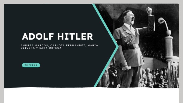 Adolf Hitler nació en Austria en 1889. Cuando era joven, quería ser artista, pero terminó interesándose por la política. Después de la Primera Guerra Mundial, se unió a un partido político en Alemania, llamado el Partido Nazi, y terminaria convirtiendose en su líder. Hitler tenía ideas radicales, en las que discriminaba a muchas personas, especialmente a los judíos, a quienes culpaba de los problemas del país.