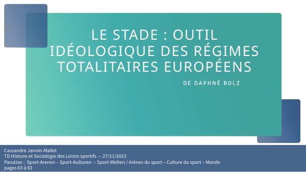 Cassandre Jannin-MalletTD Histoire et Sociologie des Loisirs sportifs — 27/11/2023Parution : Sport-Arenen – Sport-Kulturen – Sport-Welten / Arènes du sport – Culture du sport – Mondepages 63 à 83