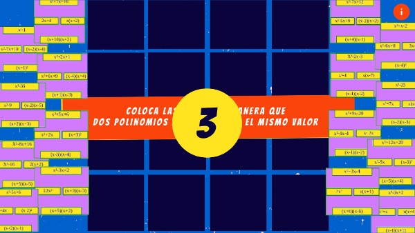 Coloca las fichas de manera que dos polinomios que estén juntos tengan el mismo valor