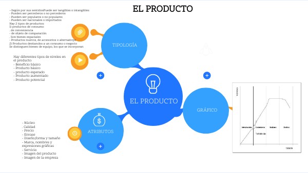 Hay diferentes tipos de niveles en el producto:- Beneficio básico - Producto básico - producto esperado - Producto aumentado - Producto potencial