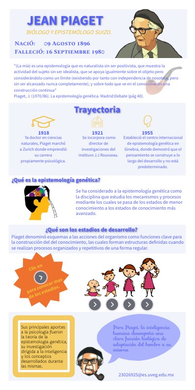 Estableció el centro internacional de epistemología genética en Ginebra, donde demostró que el pensamiento se construye a lo largo del desarrollo y no está predeterminado.