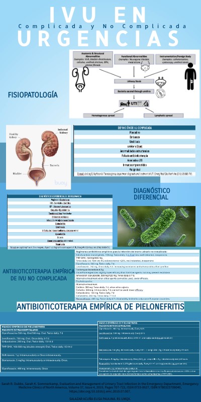 Sarah B. Dubbs, Sarah K. Sommerkamp, Evaluation and Management of Urinary Tract Infection in the Emergency Department, Emergency Medicine Clinics of North America, Volume 37, Issue 4, 2019, Pages 707-723, ISSN 0733-8627, ISBN 9780323709040, https://doi.org/10.1016/j.emc.2019.07.007. SALAZAR ACUÑA ELISA PAULINA. R1 UMQX.