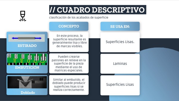 Cuadro Descriptivo de la clasificación de los acabados de superficie