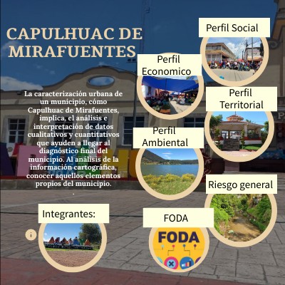 La caracterización urbana de un municipio, cómo Capulhuac de Mirafuentes, implica, el análisis e interpretación de datos cualitativos y cuantitativos que ayuden a llegar al diagnóstico final del municipio. Al análisis de la información cartográfica, conocer aquellos elementos propios del municipio. .