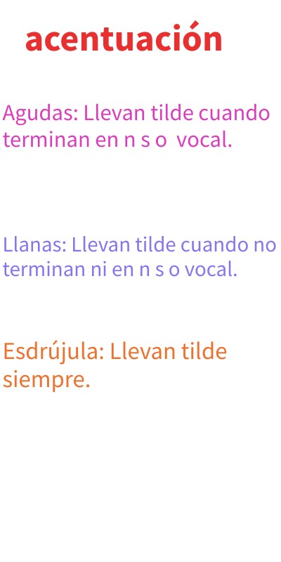 Monosilabos: No suelen llevar tilde excepto algunas palabras para diferenciarlas de otras por que se escriben igual pero tienen significado diferente.