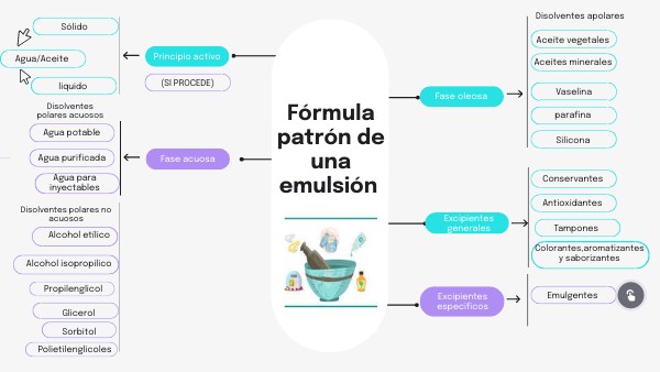 Agentes emulgentes -Sirven para unir la fase acuosa y oleosa, debe ser soluble en algunas de las fases normalmente (la fase externa) -El emulgente suele marcar el tipo del signo de la emulsión según su parametro HBL (0-20) Tipos de emulgentes Emulgentes iónicos: -aniónicos: jabones y laurilsulfato sódico -cationicos: cloruro de benzalconio -anfóteros: tegobetaínas Emulgentes no iónicos: mas usados en F.M. -span (lipofilos , Hbl bajo 3-9) -tween (emulsiones O/A , Hbl 8-16) Bases autoemulgentes mas utilizadas -Bases 0/A :Base L-200 -Bases A/0: Neo PCL A/0