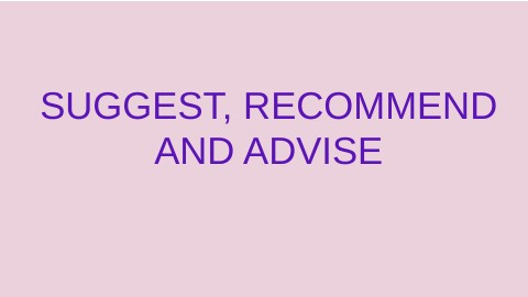 SUGGEST, RECOMMEND AND ADVISE