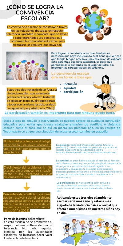 Estos 3 ejes de análisis e intervención se pueden aplicar en cualquier institución educativa para evitar que crezca cualquier situación de conflicto o violencia escolar, como el caso que se dió en marzo del presente año, en un colegio de Teotihuacán en el que una situación de acoso escolar terminó en tragedia.
