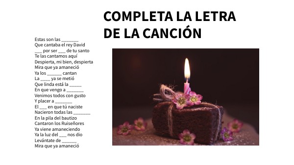Completa la letra "las mañanitas" (vocabulario del día)