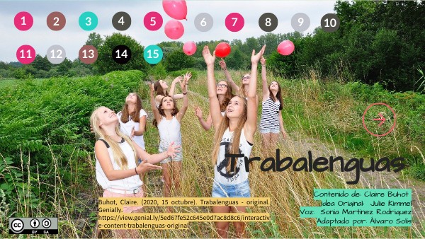 Buhot, Claire. (2020, 15 octubre). Trabalenguas - original. Genially. https://view.genial.ly/5ed67fe52c645e0d7ac8d8c6/interactive-content-trabalenguas-original