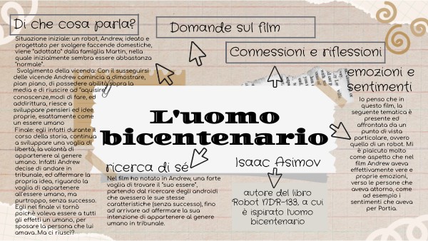 Io penso che in questo film, la seguente tematica è presente ed affrontata da un punto di vista particolare, ovvero quello di un robot. Mi è piaicuto molto come aspetto che nel film Andrew aveva effettivamente vere e proprie emozioni, verso le persone che aveva attorno, come ad esempio i sentimenti che aveva per Portia.