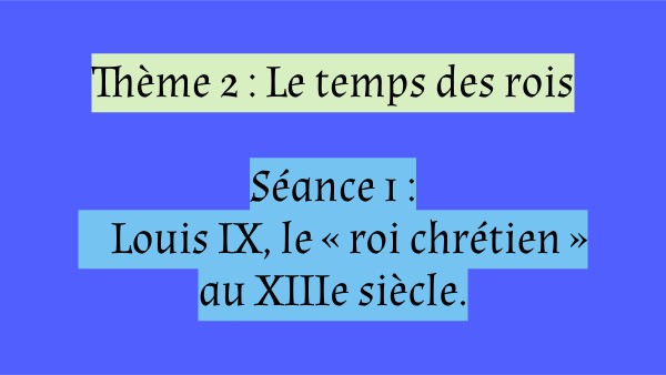 Thème 2 : Le temps des rois Séance 1 : Louis IX, le « roi chrétien » au XIIIe siècle.
