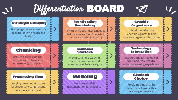 - Choice Boards: provide a menu of learning activities or assignments from which students can choose