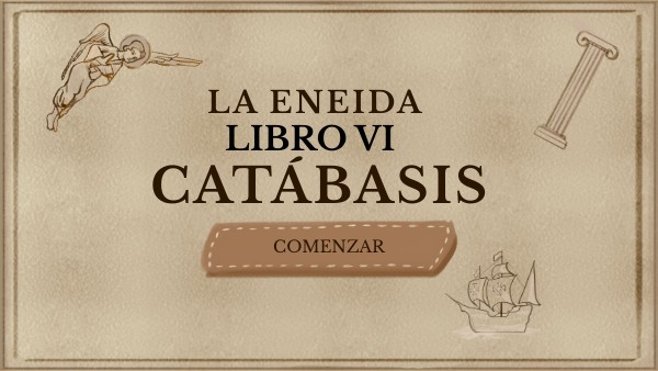 -Sibila de Cumas, roca de Euboica.-Guerra. Sangre en el Tíber. -Rama de oro Proserpina. Cadáver de Miseno. -Caronte=palma. Cerbero=pastel. -Dido en los Campos de los que Lloran. -Huye de Eneas sin respuesta.