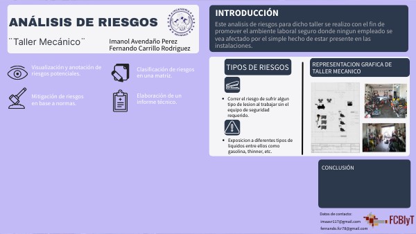 Este analisis de riesgos para dicho taller se realizo con el fin de promover el ambiente laboral seguro donde ningun empleado se vea afectado por el simple hecho de estar presente en las instalaciones.