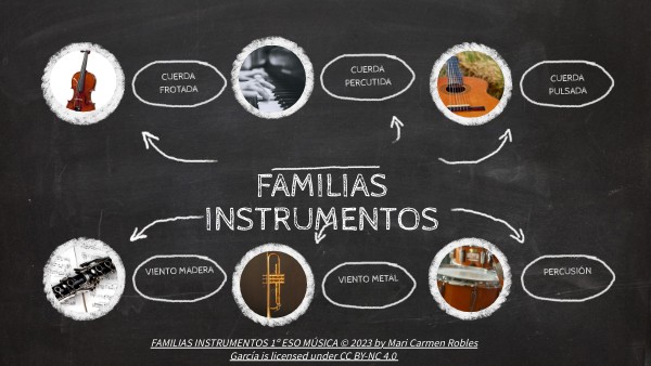 FAMILIAS INSTRUMENTOS 1º ESO MÚSICA © 2023 by Mari Carmen Robles García is licensed under CC BY-NC 4.0