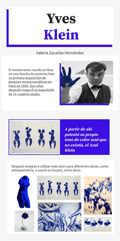 Después empezó a utilizar este color para diferentes obras, como antropometría, o usarlo en bustos, entre otros.
