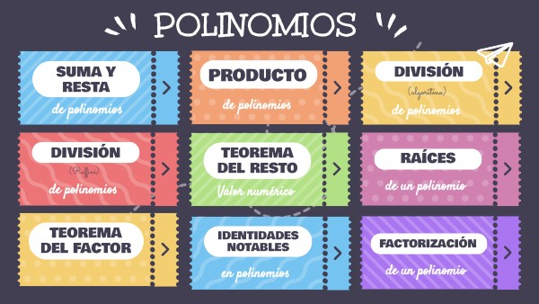 1º.- EXTRAER FACTOR COMÚN 2º.- SI GRADO P(X) >=3. RUFFINI 3º.- SI GRADO P(X) = 2. IDENTIFICAR PRODUCTO NOTABLE 3º.- SI GRADO P(X) = 2. RESOLUCIÓN ECUACIÓN 2º GRADO 4º.- SI GRADO P(X) = 1. EXTRAER FACTOR COMÚN UN NÚMERO. 5º.- SI GRADO P(X) = 1. RESOLVER ECUACIÓN PRIMER GRADO.