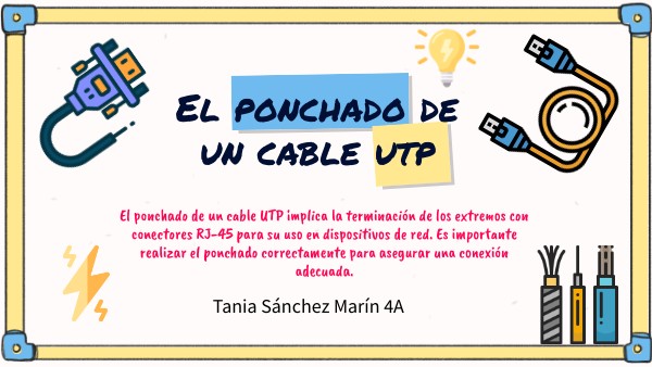 El ponchado de un cable UTP implica la terminación de los extremos con conectores RJ-45 para su uso en dispositivos de red. Es importante realizar el ponchado correctamente para asegurar una conexión adecuada.