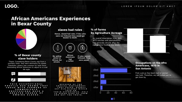 Thesis: Considering Bexar County was from a southern state, they were dominanty for slaves. Therefofre, slavery was common for work force. Stimulating African Americans to adjust to a cruel life style.